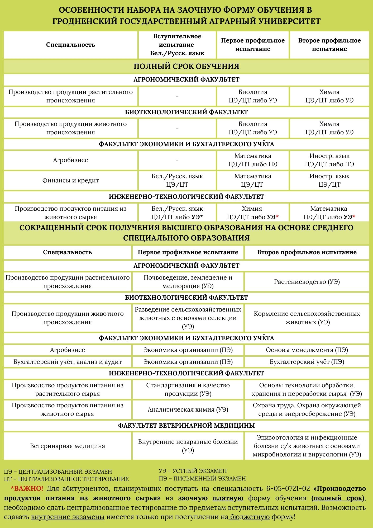 УО «Гродненский государственный аграрный университет» приглашает на обучение