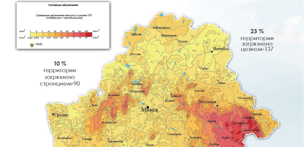 Самые опасные долгоживущие изотопы — цезий-137, стронций-90, изотопы плутония. Большая их часть выпала в 30-километровой зоне отчуждения. Чернобыльская авария коснулась половины из 118 регионов республики. 21% сельскохозяйственных земель Беларуси были загрязнены, всякую деятельность пришлось прекратить на площади в 2,65 тысяч км2. Пострадала четверть лесного фонда Беларуси. Всего из пострадавших районов были отселены 137,7 тыс. человек. Исчезли с лица земли 479 населенных пунктов.